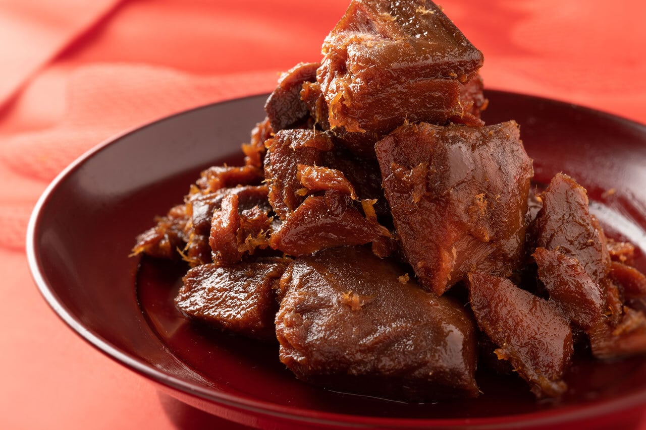 原材料:まぐろ節(焼津製造)、醤油(小麦・大豆を含む)、砂糖、還元水飴、醸造酢、生姜、寒天